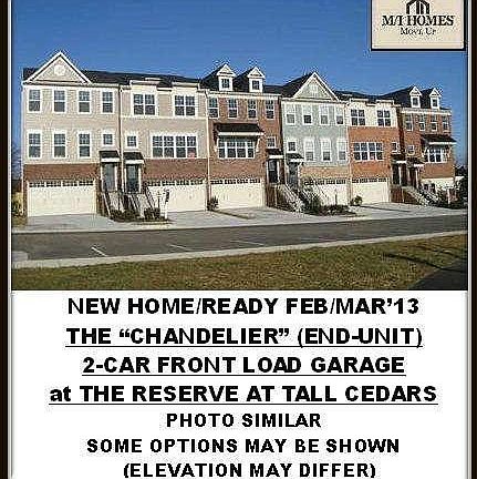 (LOT-16)READY FEB/MAR'13. END-UNIT WITH 2-CAR FRONT LOAD GARAGE & FENCED BACKYARD. 4TH BEDROOM & 3RD BEDROOM IN LOWER LEVEL. SPACIOUS FAMILY ROOM. 2-STORY FOYER. HOME FEATURES MAPLE CABINETS, GRANITE COUNTER-TOP, STAINLESS STEEL APPLIANCES, HARDWOODS & MORE. PRICES/TERMS/AVAILABILITY SUBJECT TO CHANGE. PHOTOS SHOWN ARE SIMILAR & MAY SHOW OPTIONS.