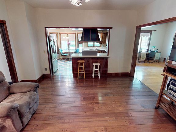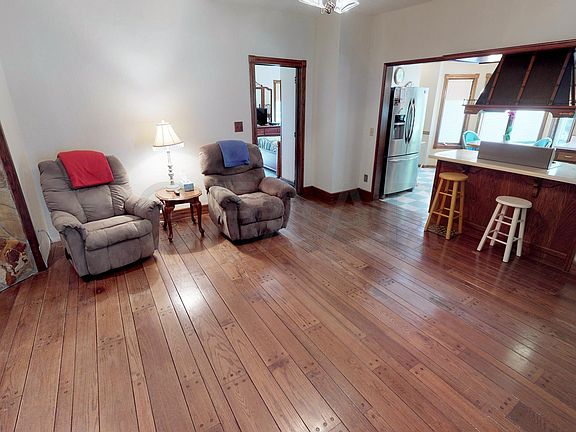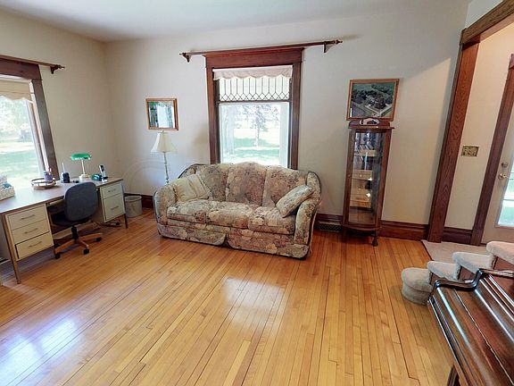 Private rural EGF property less than 4 miles from town with 3 acres, 4 bedrooms, 2 bathrooms, 2 stall attached garage on one side of house, single heated attached garage on the other side of house. Heated barn/shop appr. 26'x32'. Single detached garage, 2 smaller sheds. Wood fireplace. Main floor master bedroom & laundry.