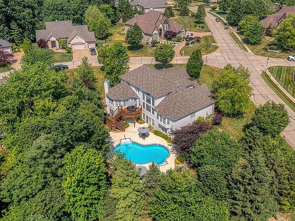 This spectacular Cross-built 1.5 Sty features over 5125 sq ft of living space enhanced by exceptional craftsmanship & distinctive design elements throughout. Impressive 2-sty foyer highlighted by architectural columns leads to private study with built-in bookcase & French doors, formal dining room & stunning great room with dramatic wall of windows. Designer kitchen featuring 42'' natural cherry cabinetry, granite countertops, crescent center island & butler’s pantry adjoins breakfast room with convenient planning center & adjoining hearth room with groin vault ceiling & floor-to-ceiling stone fireplace. Coffered primary bedroom suite provides an appealing retreat with wide bay window & luxury bath. Flared oak staircase accesses 3 additional bedrooms, 1 with ensuite bath & 2 with Jack n’ Jill bath. Walk-out Lower Level includes spacious recreation room plus office & guest suite. Atrium door opens to outdoor living area with covered patio, deck & pool surrounded by landscaped gardens.