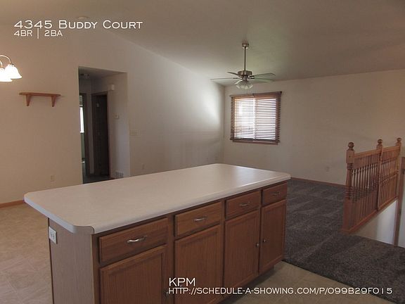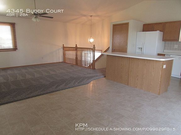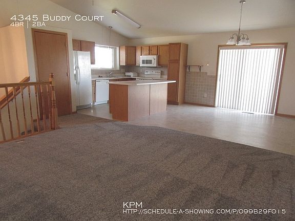 SCHEDULE A SHOWING ONLINE AT: showmojo.com/lh/099b29f015 This 4 bedroom 3 bath house is located in Rapid Valley and located at 4345 Buddy Ct. This split level home was built in 2004 and is 2,052 Sq Ft. The Upper level consists of the living room, kitchen/dining, 2 bedrooms and 1 bathroom. The lower level hosts 2 additional bedroom, 2 bathrooms, family room and laundry. Some other great features of the house include a double garage, corner lot and central air. Pet Negotiable with a $300 pet deposit per pet and an additional $25/mo per pet rent. All of our properties are SMOKE FREE! Tenants are responsible for all utilities, snow removal and lawn care. Pet Negotiable