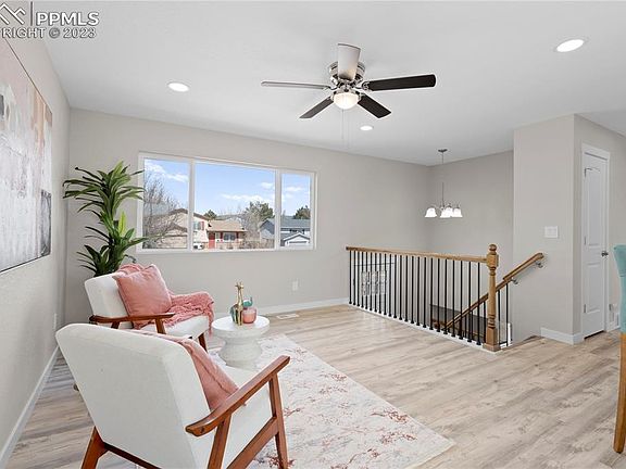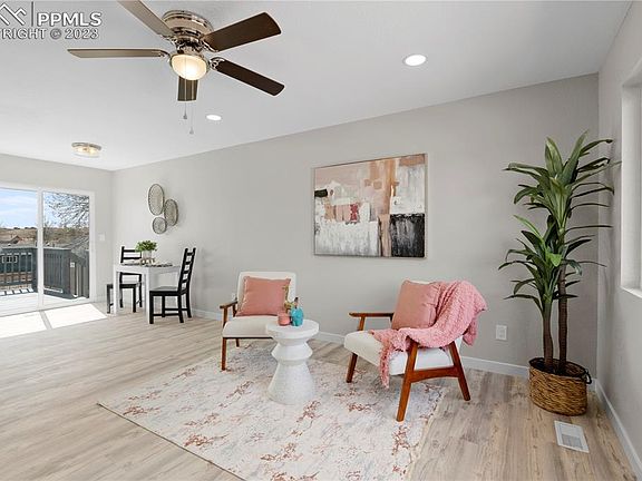 Looking for move-in ready? Look no further. This home has been remodeled from top to bottom. Your new home is located near Fort Carson and Pikes Peak community college.This spacious home features 4 bedrooms, 2 bathrooms, a 2 car garage, and 2 living spaces. Enjoy the outdoors on your deck, or hang out in your fully fenced-in big back yard. This beauty has recessed lighting throughout, new carpet, new flooring, and so much more. From your windows capture breath taking mountain views! The only thing missing is you!