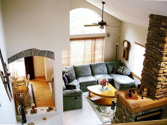 Open & Contemporary with glass & sunshine everywhere - timber & stone accents give a very Colorado feeling - angles, arches, art niches, built-ins, vaulted ceilings & plant shelves - 2 way stone faced fireplace between living room & family room - island kitchen with shaker style cabinets with glass fronts, gas range, 9' ceiling, crown molding, hardwood flooring & large dining area with sliding glass doors leading out to a 2 tiered custom deck with seating & stone column - huge clerestory window & loft area overlooking the living room & entry - large vaulted master with walk-in closet, 5 piece master bath with heated tile floor and bayed area with sliding glass doors out to a quaint private balcony - Jack & Jill bath between the 2 upper level secondary bedrooms - stucco & stone exterior with cedar beam accents and stone pillars on covered front porch - brand new roof - built in speakers - 4 ceiling fans - 6 panel doors, updated lighting - security system - professionally landscaped 1/4 acre lot with huge pines, aspen, lush lawn areas & mature landscaping - close walk to open space & trail system - immaculate condition!