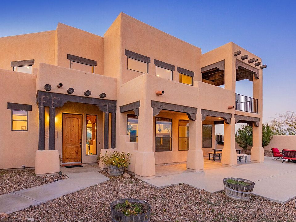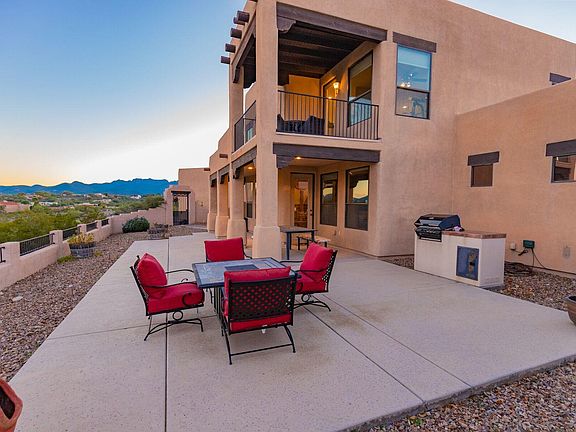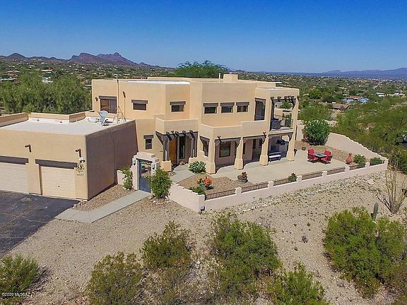 JUST REDUCED!! Views, views and more views!! Spectacular Sante Fe overlooking all of Tucson! From the moment you enter this home, you will know you found something special. Spacious with soaring ceilings, yet warm and cozy. See through fireplace in the living room and den. First floor master suite with elegant soaking tub and massive walk in closet. Impressive kitchen with loads of granite counterspace and island, large pantry and quaint eating area. Formal dining area as well! Tired of overlooking the city? Back yard has totally different yet equally amazing views! Salt water infinity pool, mature vegetation, fruit trees, basketball court, BBQ, 3 car garage. This home has it all!! Enjoy the peace and tranquility of this acre plus oasis, yet be minutes away from downtown Tucson!