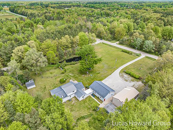 Come discover the delights of your own private retreat situated on approximately 5 acres! This spacious 5 bedroom, 2 bath home In Fruitport School District will not disappoint. The main floor features a primary ensuite, 2 additional bedrooms, dedicated dining area, sunroom, spacious living room and main floor laundry. Upstairs you will find the additional 2 bedrooms with a cozy landing area. If outdoor space & storage is what you crave, this will check all the boxes. Oversized attached 3 stall car garage with access to attic storage with flooring, 48x24 pole barn, with separate electric service and a plethora of 210 & 110 outlets, high ceiling, 16 ft garage door & winterized bathroom, 3 additional storage sheds, garden areas with irrigation & a pond! There is more land to enjoy at the ... back of the property that the ariels don't show, schedule your tour today!