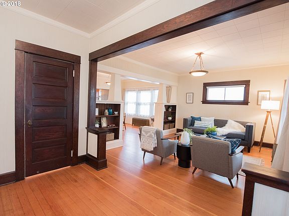 Cozy 1914 Craftsman enhanced w/modern updates. Pristine woodwork, gourmet kitchen, skylights, eating nook + formal entry. Two bdrms on the main floor + full bath. Giant upstairs den/office/studio space with inviting master bedroom. Custom closets, balcony deck, new windows, plush carpet & incredible light. Full unfin. basement, tandem garage, front porch, private backyard, new sewer line and hop-skip to downtown and eateries.