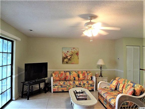 Looking for a condo convenient to the Little River Waterfront, North Myrtle Beach and all the restaurants, shopping, golf and activities the area offers then take a look at this first floor 1 bedroom/1 bath condo. The condo is being sold furnished and comes equipped with a washer/dryer. The floors have been tiled throughout for easy maintenance. Both the great room and the bedroom have ceiling fans installed. Sliding glass doors open from the great room to a covered patio with a private setting. A great location and condo for your 2nd home or primary residence.