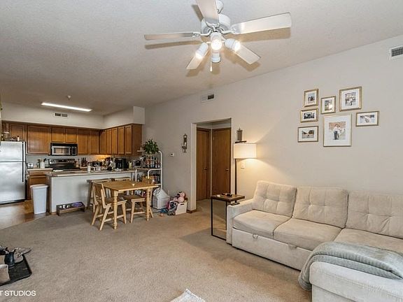 Welcome to this charming 2-bed, 1-bath condo on Iowa City's east side. Built in 2004, this well-maintained property features an open living area with a gas fireplace and private balcony. Enjoy the convenience of in-unit laundry and a detached garage stall. Located near shopping, dining, and across the street from Frauenholtz-Miller Park. Don't miss the opportunity to make this delightful property your new home or investment property. This condo is currently rented through June 28, 2025 at $1,200/month. Tenants willing to vacate property at the end of May 2025 if Buyer preferred possession is earlier than lease end date.