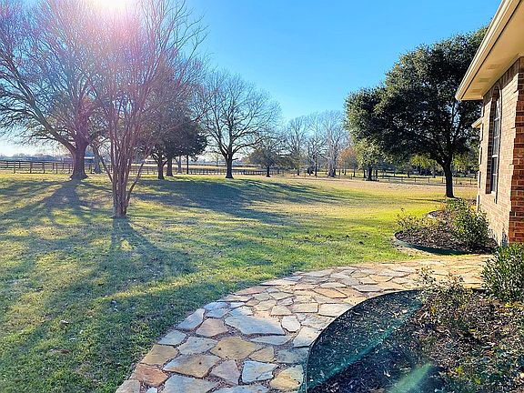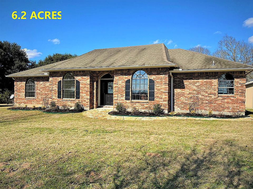 Welcome to this beautifully wooded 6.2-acre country retreat on unrestricted land. Pride of ownership certainly reflects in this well-maintained property. Custom built, all brick home has 2,255 sq ft of living space and spacious detached 24x24x10 garage/shop. Location is minutes from FM 1736 West with easy access to HWY 6 and HWY 290. Lovely live oak trees surround the home's exterior, mature trees encompass the back and side fence line to offer a private, serene setting. The home is situated in a peaceful community, lot is fully fenced with 600 feet of road frontage. Once entering, there is a welcome feeling of home. Spacious kitchen has plenty cabinetry, generous center island perfect for those large family/friend gatherings. Jenn-Air double ovens, gas cooktop, arched corner windows, big breakfast room, large dining and family room with fireplace. 3 bedrooms, 2 1/2 baths, study-nook and oversized laundry room. Roomy master bedroom has large closet, master bath, a separate walk-in shower and jetted garden tub. Sit on the back porch, relax and unwind. Plenty of room in this tranquil parklike setting for a pool, garden or horses. Lovely flagstone pathway scallops front yard bedding. Home has double pane windows, gutters and downspouts on house/garage. Septic system has two 500-gal concrete tanks/2 drain lines, water well, 250-gal propane tank. Recent updates include; HVAC system, 50-gal hot water heater, ceiling fans, light fixtures, paint and more.