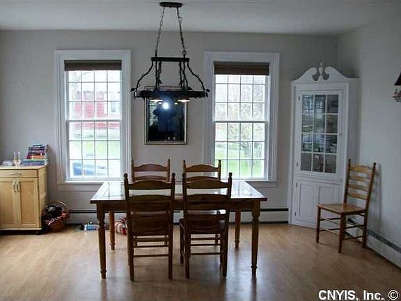 A HOME TO MAKE YOU HAPPY. Very large living/dining room with lots of windows to brighten the day. A pellet stove keeps energy costs low with the ambience of a fireplace. Wide open stairway has the original crystal chandelier. Custom oak cabinets give you storage galore in this modern kitchen. 1st floor laundry and mudroom make life alot easier. All bedrooms are good sized and plenty of closets and storage in spite of this home's age. Deck overlooks the nice backyard. ATV trail across the street as well as Mud Lake and nearby Butterfield is only a walk away. With only a short drive to base.
