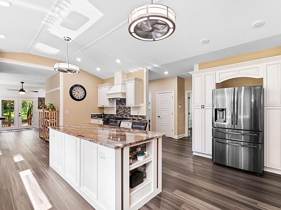 - Fireplace, Window Treatments, Breakfast Bar, Bedroom on Main Level, Entrance Foyer, Kitchen Island, Stainless Steel Appliances, Workshop