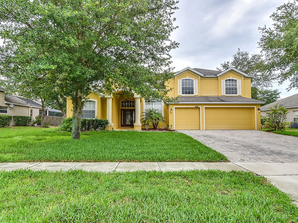 Eye-catching colors and a covered porch create interest in this two-story Apopka home that has been updated with a new HVAC. Once inside, the floor plan shows it was designed for gatherings with a fireplace for atmosphere, a dining room and a breakfast bar for eating options, and a kitchen featuring Corian countertops and a pantry for hosting. Retreat to the master suite that has space for a sitting room, two walk-in closets, dual vanities, separate tub and shower, and patio access. Travel outside to find a covered patio with room for seating and a yard large enough for many outdoor activities. All Opendoor homes come with a 30-day satisfaction guarantee. Terms and conditions apply. Open House: Mon-Sun, 6am-9pm