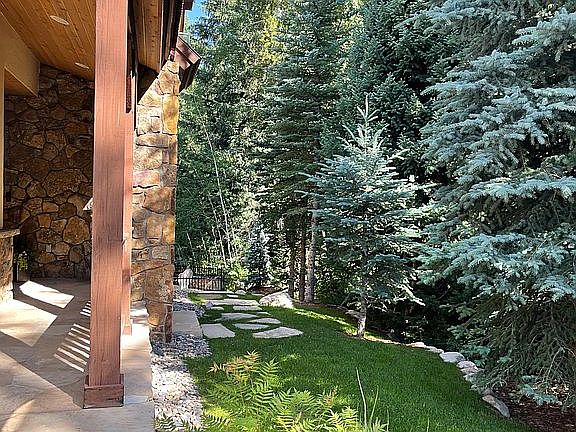 The beautiful woodwork throughout this newly-built, single-family home accentuates its stunning alpine setting directly located on Bighorn Creek. Offering an expansive, open concept main floor with remodeled kitchen (3 ovens)- copper fixtures and hardwood flooring, a new floor to ceiling stone fireplace with mounted large screen tv and expanded windows with mountain vistas, two luxurious and private master suites both upstairs and one downstairs, four additional spacious bedrooms upstairs and downstairs, and a renovated gym/ media room, this home has plenty of space for you, your friends and family. Add in a large deck renovated and expanded with a hot tub, newly hardscaped patio with an huge stone outdoor fireplace and wrought iron gates, newly shored up stone retaining wall, completely remodeled outdoor landscaping and sprinkler system, spacious 2-car garage and this becomes an ideal mountain retreat, only steps to the free TOV bus.