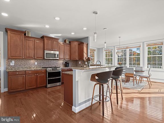 Discover the refined luxury of this Ashford I Model by Viking Custom Homes—a stunning Colonial home nestled on a quiet, no-through street in a sought-after neighborhood. Set on a picturesque lot backing to mature trees, this property offers privacy, style, and a wealth of amenities, making it an entertainer's dream. The home’s stately brick front invites you into a grand two-story foyer, where rich hardwood floors stretch across the main level. Elegance radiates from the detailed crown molding, chair railing, box wainscoting, and recently updated light fixtures that enhance the sophisticated ambiance. To your left, the formal living room presents a welcoming space for quiet gatherings, while further inside, the formal dining room awaits your next dinner party. The gourmet kitchen is a chef's delight, featuring 42-inch cabinets, granite countertops, walk-in pantry, and a tile backsplash. Updated stainless steel appliances, including a gas range with a double oven and built-in air fryer, make culinary tasks a breeze. A large breakfast bar is ideal for casual dining, while the light-filled breakfast room, with a wall of windows and deck access, offers a serene space to enjoy your morning coffee. Adjacent to the kitchen, the spacious family room, complete with a cozy fireplace, is perfect for relaxed evenings. For added convenience, the main level also features an updated powder room, and a laundry room withaccess to the attached two-car garage, which is finished and prewired for electric car charging. Upstairs, the primary suite serves as a tranquil retreat. Enter through double doors into a spacious bedroom with an expansive walk-in closet. The en-suite bath boasts a double vanity, a soaking tub, and a tiled shower. Three additional bedrooms on this level share a full bath with a double vanity and a tub/shower combination with a glass door. The lower level is designed with flexibility in mind, offering a fully finished in-law or guest suite. Complete with a second kitchen, two bedrooms, and a large recreation room, this level provides independence and privacy for extended family or guests. Additional storage rooms and a walkout to the backyard add convenience. This home features many thoughtful upgrades throughout. Most interior rooms have been recently repainted, and new carpeting graces the upper level and stairs to the lower level. Concealed in-wall TV/media wiring, along with built-in speakers in the kitchen, dining room, family room, and on the deck, provides a streamlined media experience. Step outside, and you’ll find an outdoor oasis ready for year-round enjoyment. A large composite deck overlooks a beautifully landscaped backyard, with spiral stairs leading down to a covered patio. Outdoor entertaining is a breeze with a built-in grill with prep sink and granite bar with seating on the patio. The screened porch, equipped with a gas line for a fire pit, is ideal for cozy evenings. Stone steps lead to the highlight of the outdoor area—a heated, inground saltwater pool with a waterfall. Surrounding the pool, a stylish pergola with shades and a fire feature with a gas line create a perfect setting for resort-style gatherings. Thoughtfully placed exterior lighting illuminates the space, creating a warm ambiance for evening enjoyment. The backyard is framed by aluminum fencing that blends seamlessly with the wooded backdrop, providing a private sanctuary. Built by Viking Custom Homes, a Green Energy Builder, this property is crafted with energy-efficient construction practices, including Viking’s “Wall Rigid Insulation System” for added climate control. The home’s location offers exceptional convenience, with nearby attractions like Historic Ellicott City, Centennial Park, and Meadowbrook Park and Athletic Complex. Schools are close by, and commuter routes ensure easy access to surrounding areas.This exquisite home, lovingly maintained by its original owners, embodies comfort, elegance, and exceptional design.