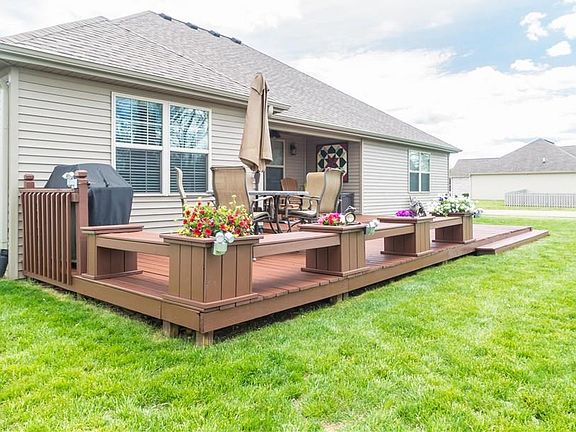 This gorgeous custom, well maintained, split floor plan ranch home is on a corner lot and offers a great outdoor living space. 3 bedrooms, 2 full baths, 2 car garage, open concept floor plan with a fabulous eat in kitchen with many upgrades and extra storage. The custom ceiling features, lighting and trim package on this home is the cherry on top for this beautiful home.