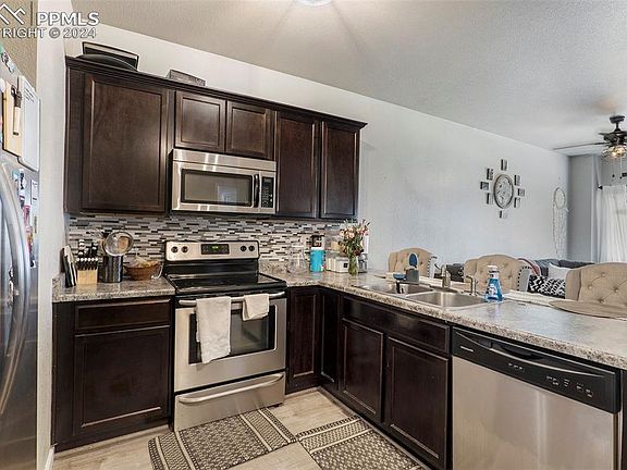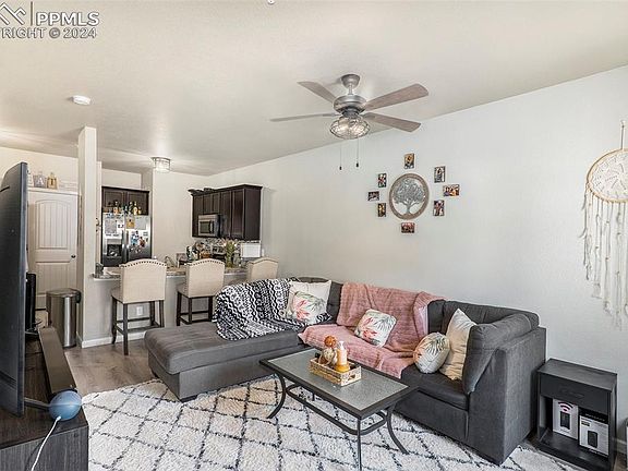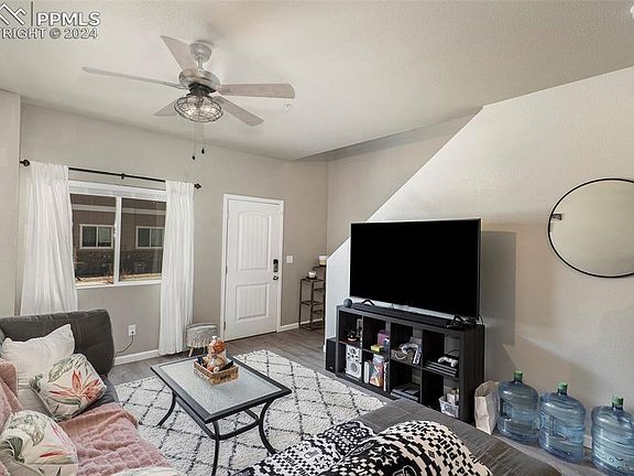 Come check out this beautifully updated townhome with upgrades galore! From the hardwood floors all throughout the main and upper level, the gorgeous recently updated light fixtures and ceiling fans, the stainless steel appliances and modern kitchen, this home will not leave you desiring anything else! The main level features a beautiful eat in kitchen with bar seating, a spacious living room, a HUGE ADA accessible bathroom, and a large laundry room with the washer and dryer both included. The upper level has a spacious master suite with an attached bathroom and a HUGE walk in closet, a second bedroom, and another full bathroom. The cherry-on-top feature of the home is the finished basement that can be used as the 3rd bedroom with a separate full bathroom, or as a huge alternative living area/recreation space. The home is centrally located to Powers, shopping centers, restaurants, schools, and minutes from both Peterson Air Force Base and Fort Carson! Don't miss your opportunity to own this beautiful home!