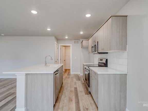 Enter into a brand new home in Meridian, Idaho and enjoy its benefits and stress free living! Welcome home to the timeless Poe 1471! Here you'll enjoy a thoughtfully laid out living space with an open concept main level and all three bedrooms tucked upstairs. The kitchen comes with stainless steel appliances and stylish solid surface countertops, adding both functionality and aesthetics to the kitchen. Easily slip outside for some fresh air on the back patio off the dining room. Retreat upstairs where the primary suite and two other bedrooms await. Photos are similar. All selections are subject to change without notice, please call to verify.