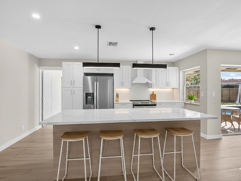 A Modern Masterpiece in the Making.Rarely does an opportunity arise to step into a renovation of this caliber so close to the finish line. This expansive four-bedroom, two-and-a-half-bath pool home has undergone a massive transformation, with the current owner investing in high-end upgrades that set a sophisticated tone throughout. The heart of the home is a brand-new chef's kitchen, boasting sleek granite countertops and a layout designed for modern living. Beneath your feet, beautiful wood-look ceramic tile spans every room, offering the timeless elegance of hardwood with the effortless durability of tile. While all three bathrooms have been extensively renovated, they await your final selections for hardware and trim to truly shine. The interior luxury is matched only by the impressive scale of the exterior. Situated on a significantly larger-than-typical lot, the property features a grand circular driveway that provides both convenience and a sense of estate-style curb appeal. The backyard is a true private sanctuary, anchored by a massive swimming pool that far exceeds the size of a standard residential pool, offering endless potential for outdoor entertaining.