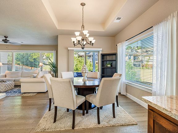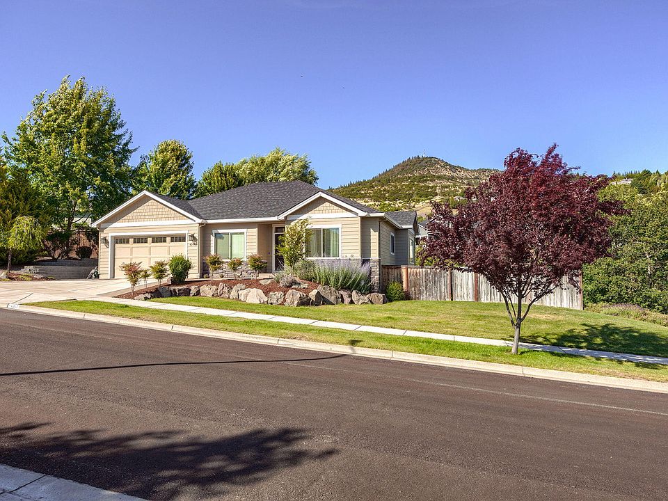 This meticulously maintained single-story home boasts 3 bedrooms plus an office/den, spanning 2025 sq ft. With one owner, you'll appreciate the like-new condition. The home features high ceilings, engineered wide plank flooring, a fabulous great room w/gas fp, windowed dining and a gorgeous kitchen showcasing rich wood cabinetry, stunning granite slab counters & all s/s appliances w/gas cooking. The spacious laundry includes a W, DR and laundry sink. The private master suite offers you a tranquil retreat. Outside, your enjoyment continues with a .35 AC fenced & timed sprinkler system in a fully landscaped yard and provides privacy as well as a lovely deck off the kitchen/dining area and mountain views. Located in a desirable SE Medford neighborhood, this home is just 2 blocks from the delightful OR Hills Park and features sidewalks leading clear up to the Roxy Ann Mtn area. Priced @ $550,000, this is a fantastic opportunity, ready to move into Now!