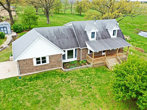 Unique Hobby Farm! 2,324 Sq. Ft. Brick Home, 7 Acres, Pond, Machine Shed w/ Shop, Chicken House/Outbuilding, Raised Garden Beds with Water Source an abundunce of Fruit Trees and a View! This home was custom built in 1989 and offers so many characteristics that are hard to find. The main floors consists of a 24x16 Living Room, 17x13 Master Bedroom, Large Master Bath w/ Jetted Tub, Double vanity, Tiled Walk-in Shower & Master Closet, 13x14 Dining Room, 10x 13 Kitchen w/ Lots of wood cabinetry, corian counter tops,gas cook top, wall oven, dishwasher, microwave and refrigerator included, Breakfast Room and Laundry Room. The kids will love the second floor. Both Bedrooms are large and offer a Jack-n-Jill Bathroom plus a bonus room to make it whatever you like. Outside is a hobby farmer/gardners dream. You can live off of your own land with a yard that offers multiple fruit trees, blackberries and blueberries, raised garden beds w/ water source making gardening a breeze, 3 freeze proof water hydrants, fenced pasture for cattle, sheep or horse and chicken house/storage building for eggs. The machine shed with shop makes for a mans dream. Sit on the covered front porch and enjoy the pond and the beauty of your own creation. The home has had many updates in the last few years and the Seller is offering a $5,000 flooring allowance with an acceptable offer. Located less than 5 min to School, 15 minutes to Beautiful Stockton Lake and 10 Minutes to Bolivar! This is a must see!!