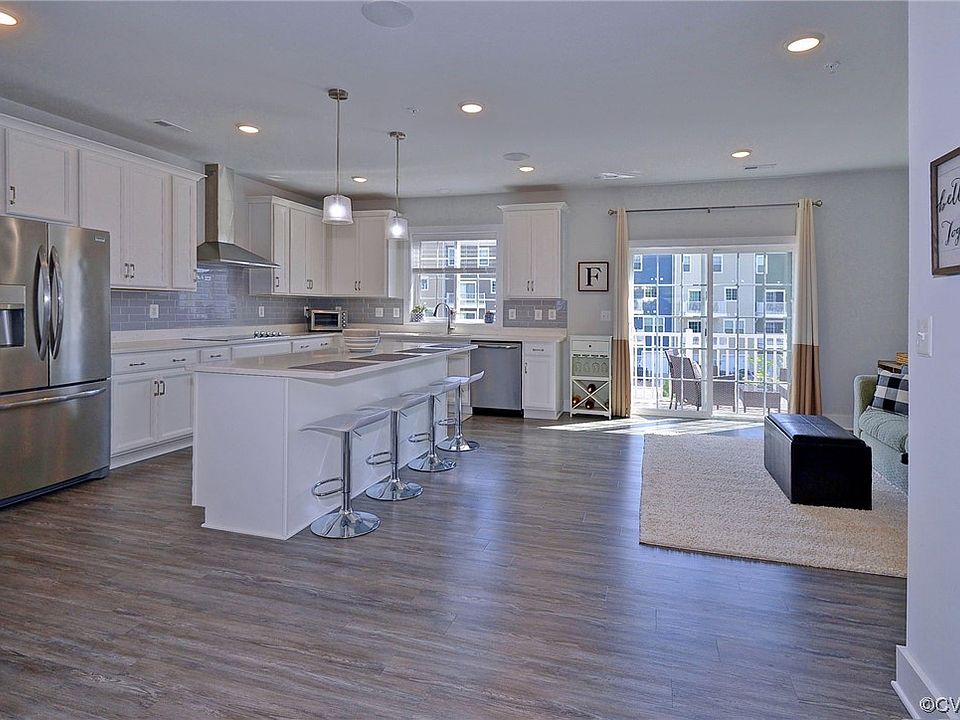 Lovely, three level, brick, interior condo in the heart of Short Pump. Immaculate and incredibly maintained with modern touches throughout. The spacious main level features an incredible white kitchen with stainless steel luxury appliances, quartz countertops and luxury vinyl flooring. Enjoy morning coffee in the comfortable den or the sunlit balcony off the kitchen. The open floor plan leads to a sizable formal dining area and large living room overlooking the playground and common area. The upper level features a massive primary suite with amazing walk-in closets and en-suite bath with dual vanities and spacious tiled shower. Two additional well-sized rooms share another full bath off the hall. Fantastic amenities include: clubhouse, pool, playground, fitness room, and yard maintenance!
