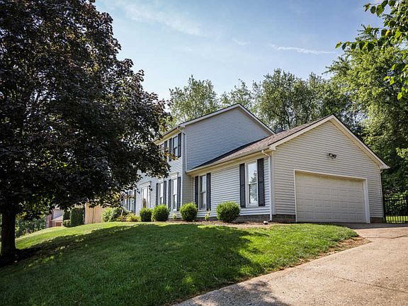 You don't want to miss this charming move-in ready home in the desirable Bluegrass Fields subdivision of East Louisville. This 4 bedroom, 2.5 bath home is sure to impress, featuring hardwood floors throughout much of the first floor, as well as a spacious eat-in kitchen that opens to the living room, and a formal dining room. The living room is highlighted by the beautiful white built-in shelving and cabinetry flanking the brick fireplace. The open concept eat-in kitchen has loads of natural light coming through the bay windows overlooking the backyard. The main floor also boasts an updated half bath, additional family room, and an attached two car garage which can be accessed from the kitchen. Upstairs, you'll find the owner's suite with attached full bathroom, and walk in closet. Conveniently located off the owner's suite you'll find the laundry room. The second floor also features 3 additional bedrooms with ample closet space, and an updated full bathroom. You'll enjoy many fall nights on the spacious back deck that overlooks the large, fully fenced backyard. With nothing to do but move right in, this house is the perfect place to call home!