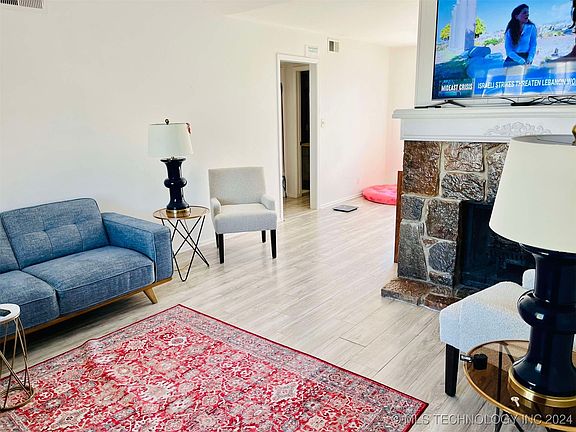 Discover the perfect blend of comfort and convenience in this updated condo located in Jenks school district. New hard surface flooring throughout and refreshed interior paint. Cozy living room includes a fireplace and opens to dining area with a balcony offering a peaceful retreat. Designed for both practicality and privacy, the floorplan is ideal. The community is nestled among mature trees and offers a pool and clubhouse for residents. Situated near St Francis Hospital with easy access to shopping, dining and entertainment, this location is unbeatable. Additional perks include a washer and dryer (new in 2021) and newer refrigerator. Seller is even leaving a flat screen tv, decor, furniture and a brand new sectional for the new owner!