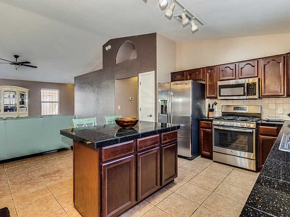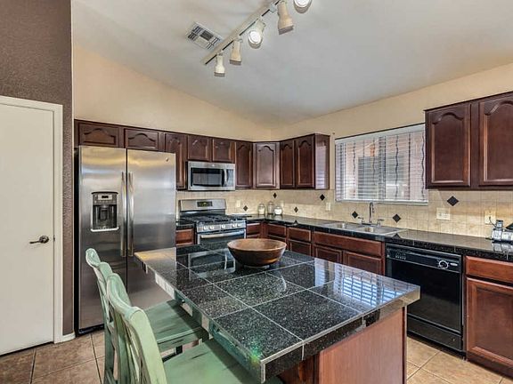 Stunning home! This home boasts beautiful tile, a neutral palette and the perfect kitchen. This kitchen hosts dark rich cabinetry, stainless steel/black appliances. A breakfast bar, and dining area for entertaining! Lovely granite and a pantry add the finishing touch! The master suite is generously sized and is complete with double sinks, granite countertops. Create your own oasis in the desert! Don't delay - see this one today!