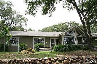Single story custom home in private garden setting.