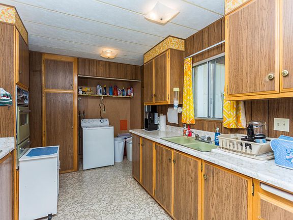 Very affordable two bedroom, 2 bath double wide manufactured home on cul-de-sac. Large living room, dining area with room for over-sized table, built in china cabinet. Kitchen has wall oven, counter top stove and plenty of cabinets. Laundry hooks ups located inside home. Den add-on that could be used as office/possible bedroom. This .22 acre lot features over-sized detached single car garage with enough room for a car plus other toys or use as workshop. Home is covered by a separate standing roof. Close to schools, amenities and easy access to highway.
