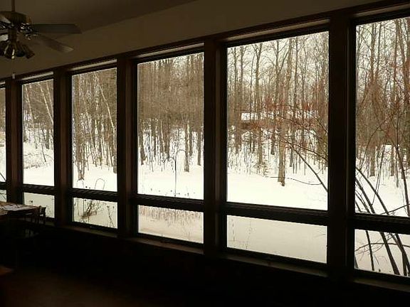 Wonderful contemporary home located in Phelps. The home features a wall of south facing windows giving the home a sunny disposition! The south facing wall and the large brick chimney help reduce the home's carbon footprint by using solar energy. The home sits on 2 lots and is studded with many hardwoods for privacy. There is even a view of North Twin Lake. The home uses the great room concept with kitchen/dining/living all sharing the very bright sunlit space. There is also one bedroom and one bath on the main floor. Upstairs, there are two more large bedrooms and a full bath. The home uses natural gas hydronic heat and there is also a gas stove. A rare feature is that the home is connected to city water and sewer. There is a 2-car attached garage too. The home is being offered at $50K below appraised value!