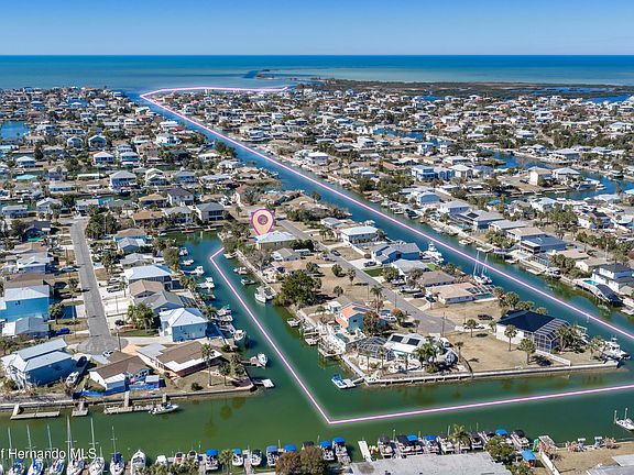 DIRECT GULF ACCESS!! 6,000 (60X100) waterfront lot on DEEP WATER CANAL that is ready for you to build your dream home! Property is located in a flood zone so any home constructed will need to be elevated. R1B zoning for a single-family home. Located in the charming coastal town of Hernando Beach!! No Short-Term rental restrictions or deed restrictions. Outdoor enthusiasts will delight in the proximity to Weeki Wachee Springs, where they can enjoy swimming, kayaking, and exploring the natural beauty of this breathtaking area. Additionally, the surrounding area offers a variety of restaurants featuring live music and entertainment, as well as charming shops for leisurely strolls and unique finds. This sought-after location provides a peaceful retreat away from the hustle and bustle of city life, while still offering convenient access to nearby attractions and necessities. Don't miss the chance to own a piece of paradise in Hernando Beach and experience the ultimate coastal lifestyle! Water, sewer, and power connections are located at the street. (Please note that lot lines shown on aerials are approximate.) Property is on the right side of the Road before 4354 Tahiti Drive.