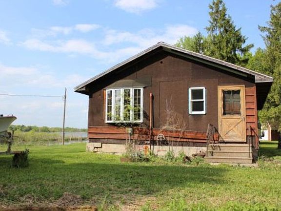 Season cabin on channel to large recreational lake plus 5+ acres with a pond across the road included. Only 3.4 miles to Freeway. Priced to sell as its a serious fixer upper sold "as is". Cash or contract for deed. No lender financing allowed. Fuel would be propane. Has electric but disconnected. Probably freeze damage to plumbing. Newer shingles but needs siding and some windows need replacing. Missing well tank and water heater.