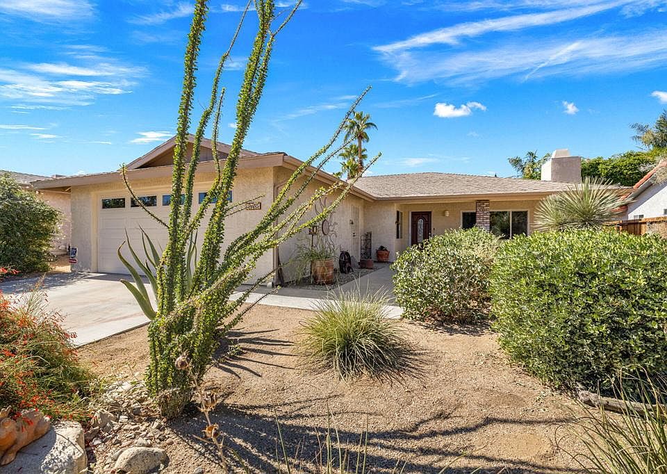 3 bedroom 2 bath home with lots of great features. There are 2 community pools and a spa. The community also features a low HOA at only $33 a month. There is a community hall that can be rented out for parties and events as well. for fun and exercise there is a community park with basketball, volleyball, a park for kids, dog park, and rose garden.The home has had some upgrades including the beautiful kitchen with gorgeous countertops ,bathrooms, floors sliding barn door ,fireplace and more . This home is close to the world famous Indian wells tennis garden and the Acrisure Arena where our new pro hockey team plays and they put on big name concerts. If you love to shop and eat we have the famous El Paseo about a 7 min drive. So many things to enjoy in our beautiful desert. 30 day or more short term rentals allowed.