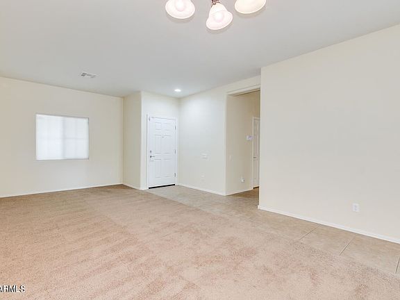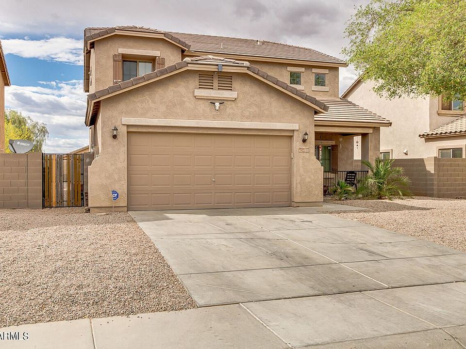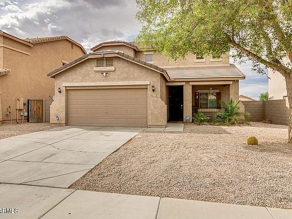 Immaculate and move-in ready 4 bed/3 bath home in Maricopa! Freshly painted interior, with blinds and ceilings fans in every room. Spacious kitchen with lots of maple cabinets, a center island, and large tile flooring. The floorplan includes a downstairs bedroom and full bath, perfect for guests or multi-generational living. Upstairs are 3 additional bedrooms, and a loft that could easily be converted into a 5th bedroom. The fridge, washer, and dryer are all included so you can move right in. Low-maintenance desert landscaping in the front and backyards, and the Senita neighborhood is centrally located in the heart of Maricopa. Come see this amazing house today before it's gone!