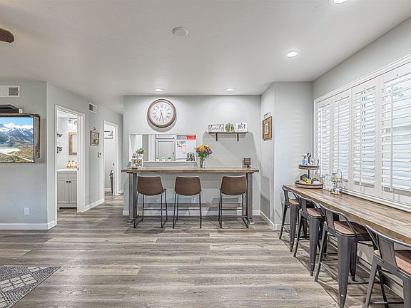 Stunning Marbella condo! This property boasts 3 bedrooms, 3 bathroom, over 1300 square feet, and a attached 2 car garage! The location of this development is close to schools, shopping, and dining. The condo is also in a fantastic location within the development, just a few feet from a large section of grass. The condo offers a patio area just outside the front door. Inside you will find luxury vinyl plank flooring that extends throughout the entire home. Downstairs includes a spacious living room that has plantation shutters. From the living room the floorplan seamlessly transitions into a your dining area. Adjacent to the dining room is your beautifully upgraded kitchen where you will find stainless steel appliances, quartz counters, custom tile backsplash, plantation shutters, and recessed lighting. Next to the kitchen is your laundry room, access to the garage, and a half bathroom. Continuing your tour up stairs you will see all 3 bedrooms which are generously sized and 2 full
