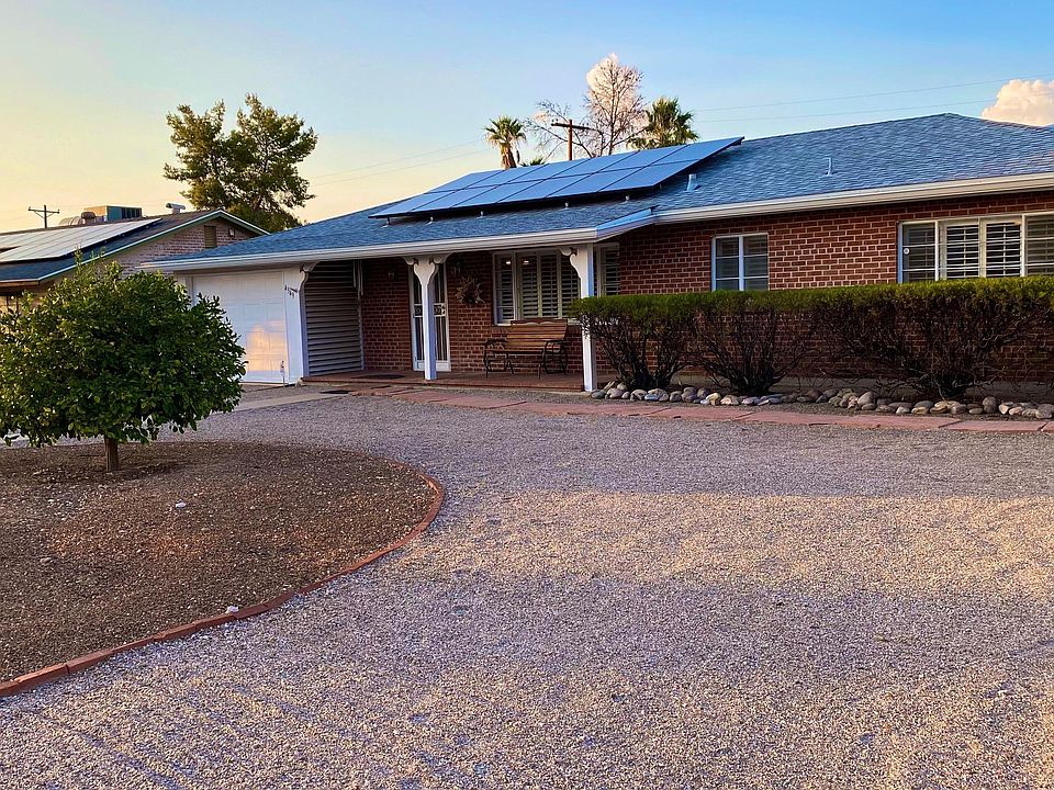 Beautiful and well maintained home in quiet central Tucson community. Double brick construction. Generous back yard, low maintenance landscaping with new irrigation system. Solar panel system - fully owned and covers 100% of electricity usage - conveys with home. Bonus storage off laundry room. Carport mostly converted to a garage (not 100% enclosed) and has electric door opener. Half a mile from Reid Park and about 12 minutes to downtown Tucson/UA!