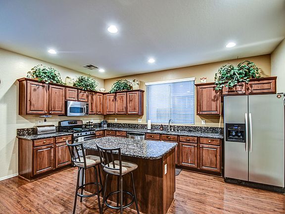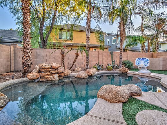Welcome home! Gorgeous four bedroom, plus loft, 2.5 bath home in Highland Groves at Morrison Ranch with POOL!Great room floorplan & huge kitchen/eating area have gorgeous wood laminate floors. The kitchen is a dream with granite counters, upgraded cabinetry with crown molding, stainless steel appliances, center island and more! Upstairs you'll fall in love with the loft, three guest rooms, work station and master suite. The master features an en-suite bath with walk in shower and garden tub. It even has TWO closets! Your private backyard features professional landscaping, artificial turf and a POOL with removable fencing. Leased solar system to keep utilities consistent and low!