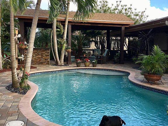 If a swoonworthy outdoor space is on your list of must haves, then stop whatever you're doing and make an appointment to see 4349 Elm Avenue. In a world of cookie cutter homes with bland spaces this home outshines the rest. Before we start on the Shangri-La like backyard, let us begin with the location, the heart of Palm Beach Gardens. A myriad of fabulous local eateries and fine dining establishments are all within a one mile radius, as are scores of great shops and the The Gardens Mall. This immaculate 3 bedroom, 2 bath, 2 car garage home including Bahama shutters is a perfect fit for the entertainer or chef in you. A massive granite counter top with gas cooktop makes this one of a kind kitchen a rare find. Add to that a separate dry bar with a professional under-mount keg,
