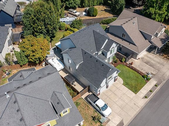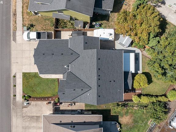 A beautiful home to make new memories in! 4 bedroom plus office and a Bonus room could be a 5 bedroom and loft area. Step inside to gleaming hardwood floors, den/office, dining, Great room, Kitchen and nook on the main floor. Pristine condition. Kitchen with island with eating bar, stainless steel appliances, gas appliances and a nook. Opens to the covered patio, patio, gas connection on the patio for BBQ or gas fireplace, 2 fountains, secluded yard perfect for outdoor entertaining. Manicured like a putting green. 4 Bedrooms on the upper level plus the bonus and small loft area. Lovely primary suite, large with walk in closet, spacious walk in shower. Bonus room is vaulted with additional storage. Laundry on the main floor with newer washer, dryer in 2023. 3 car garage tandum but driveway serves parking for 3. Built in storage in garage with work bench plus cabinet to stay including dual kayak rack on ceiling. RV parking behind the gate is 47 feet with 120v outdoor outlet. Wonderful outdoor landscaping. Storage Shed 8x8. New Roof in August 2022. Central Air. Simpli-Safe Alarm.