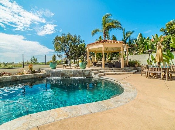 Imagine relaxing in your salt water pool, waterfall & spa watching the sunset sky. This large ocean view backyard was designed for entertaining; features an outdoor kitchen with Lynx Grill, fire pit, and custom gazebo. This beautiful home is located on a cul-de-sac just 3 miles from Downtown Carlsbad. Downstairs has dark Bamboo flooring, a chef's kitchen with an island and features maple cabinets & granite counter tops. The First floor has a bedroom and bath, living room, dining room, breakfast room, family room and a 3 car garage. Upstairs 2 additional large bedrooms and bath and a Master suite with spa tub and separate shower. You can relax on your private balcony off of the Master bedroom and watch the most amazing sunsets. On July 4th you may just get to watch the Legoland fireworks show. No Mello Roos or HOA. Quickly schedule a private tour to appreciate this home before its sold. For more information please call 619-537-9694.