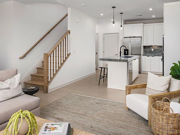 Built in 2024, this 1,525 sq ft, two-level condo blends comfort and convenience in a vibrant, amenity-rich community. The main level features an open kitchen and family room with crown molding and recessed lighting. The kitchen has a center island, large pantry, wall oven, cooktop, and dishwasher. Upstairs, the primary suite offers a huge walk-in closet and a beautiful en-suite bath. Two additional bedrooms work well for guests, an office, or hobbies. Private balcony for fresh air and morning coffee.
