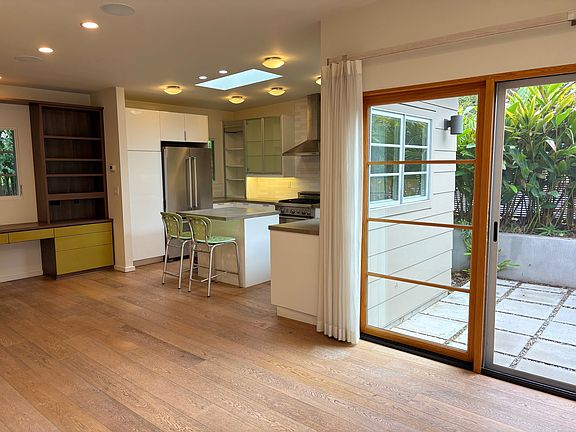 2 BR 1 BA with open floor plan, Inspired by Mid-Century Design. This charming bungalow, in a semi-rural setting, was completely rebuilt in 2012 and features dramatic 10 ft. ceilings, modern lighting plans and custom cabinetry by California Closets throughout. Skylights in living room and kitchen, and floor to ceiling glass, flood the space with natural light. A cook's kitchen is equipped with high quality appliances and designed with lots of storage and counter space. Tiled bathroom includes a Japanese-style soaking tub and creates a relaxing retreat. Private, enclosed patio and garden areas extend the living space. Front loading washer/dryer in unit. Backyard storage locker can accommodate bicycles and other tools and equipment. Uncovered off-street parking for two vehicles. Gardeners provided once a month. Pet friendly. Hiking trails nearby. 10 min by car to UCSB, Cottage Hospital or downtown. Freshly painted inside and out, and available now. Please email for appointment. Owner pays water and garbarge