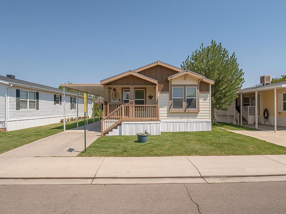 Welcome to this spacious 1440 sqft home. Built in 2021 the home features vaulted ceilings, tile floors, great room, central air conditioning and natural color palette. The generous primary suite situated at the back of the home is complete with private bath and walk in closet. There are two spare bedrooms, laundry room (with exterior access) and full main bath. Kitchen features gas range/oven, built in microwave, side by side fridge, dishwasher and plenty of counter space. Enjoy meals in the dining area or pull up to the kitchen island. Outside there is plenty of parking in the tandem 2 car carport. Enjoy the many amenities Midlands Village has to offer with the community center, park and sidewalks throught the Village. The lot rent in Midlands Village is $764/month. Water, Sewer, trash is paid seperately to Midlands Village and averages $80/month (this does vary on usage).