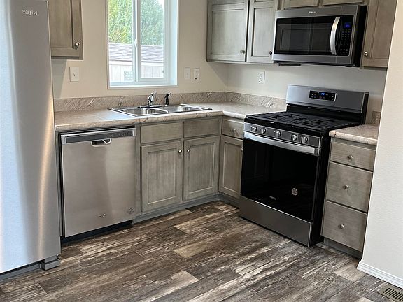 Looking for something not too big , but just right? This is it! 1 bedroom, 1 bath new home. Nice Kitchen with stainless steel appliances, and beautiful cabinetry. This is the last brand new home left in the park for sale. Open area behind home gives you space. Seller says free lawncare, and Close by 4/15/2023 and receive a $10,000 price reduction. Call for your showing today!