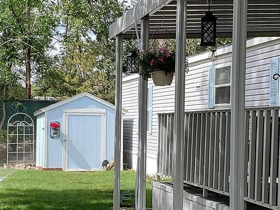 Extremely well kept 1216 sq ft home includes 3 bedrooms 2 full baths, split bedroom design. This home is situated in the quiet area of Midlands Village and backs up to a row of mature trees. There is the large covered deck just made for relaxing and to enjoy any time of the day, the yard is nicely landscaped and theres thats great shed with a new floor, lights and exterior outlets, that would make a great workshop. Appliances included are gas range, refrigerator, dishwasher and washer & dryer. New Breezair cooler, only used one season. Lot rent is $495 which includes water, sewer, trash, irrigation and the use of park amenities. RV storage, community garden, and club house use are also available. Youll want to see this this .Move in Ready!!