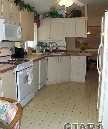 1997, Oakwood home by Golden West. 1344 SF, 3 bed, 2 full bath. Appliances include gas stove, over head microwave, dishwasher & newer refrigerator. Washer/dryer area is plumbed w/gas & electric, new sinks & toilets put in/2013, Central air, walls are 2x6construction, cathedral ceilings throughout home have R-38 insulation, Walls R-19 & Floors R-22. Walls are tape & textured throughout, w/bull nosed corners. Living & dining room have two-tone Wainscoat treatment w/molding. New carpet & pad put in the main living area in 2013. Home has ceiling fans in kitchen, living room & master bedroom. 220 electrical outlet for hot tub is all set up for it on back patio. Storage shed (12' x 10') w/double flooring. Front covered deck. 3rd bedroom can also be den/office w/a set of glass doors already at the house. Seller is leaving big screen TV, kitchen nook glass top table w/chairs & deck furniture.