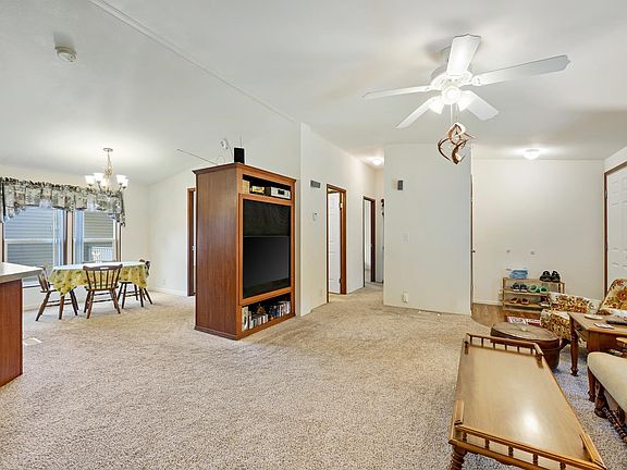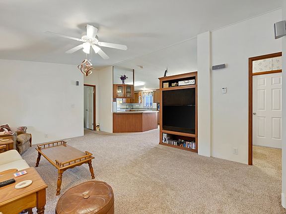 Welcome to the peaceful Midlands Village community! This home features a large covered deck at the entry way with plenty of room for relaxing in the warmer months and additional shade and privacy from the mature trees next to the home. As you enter the front door, you will find a large, open, living room with vaulted ceilings, large windows to let in the natural light, and a built in sound system great for entertaining or unwinding. The living area opens up into the kitchen and dining area with added counter space and cupboards for additional storage. The kitchen includes an electric range, dishwasher, space for a microwave, refrigerator, a pantry and ample cabinetry making meal prep a breeze. The laundry room is conveniently located just off the dining area and has access to both the back patio as well as the home's full bathroom. Down the hall from the living space you will find two additional bedrooms with generous closet space and a bright feel. The primary bedroom features a large mirrored closet and double door access to the large primary en-suite bathroom. This five piece bath includes a dual vanity, walk-in shower, and large tub that provides a nice atmosphere to the room. The Midlands Village community amenities include a clubhouse with a fireplace in the great room, rose gardens, walking trails, mature landscaping, community gardens, RV storage facilities, play ground, basketball court and dog park. Located close to schools, shopping, and all the adventure the Grand Valley has to offer, this is a fantastic place to call home in Western Colorado! Schedule your showing today!