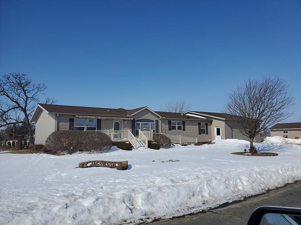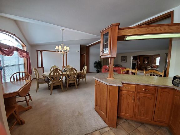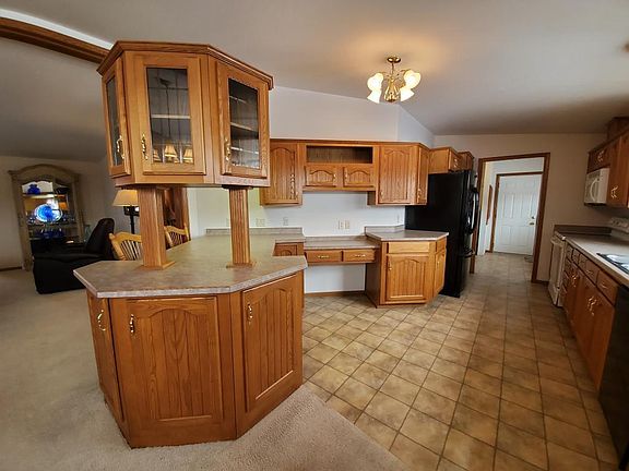 Great location near golf course with open spacious feeling inside and out. Open floor plan with vaulted ceilings, big windows, and a friendly flow. All main floor living with Master bedroom, bath, and WI closet. Family room addition with gas fireplace . Large 2 car garage is extra deep 24 x 36 with storage room. Front deck is handicapped accessible. Half block from golf course & parks and within 3 blocks to paved trail system.