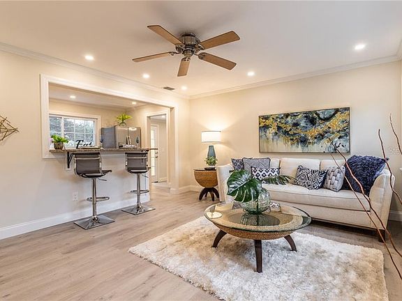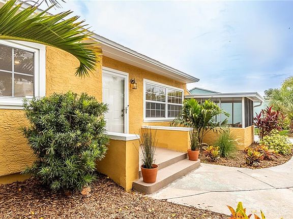 Welcome to the beach lifestyle! Wonderfully updated beach home in a quiet neighborhood that has the walkability of 3 minutes (2 blocks) to the intracoastal waterway and 6 minutes to the highly sought-after Corey Avenue area featuring quaint restaurants, boutiques, and a popular brewery! In addition, this property is minutes away from St. Pete Beach, which was named TripAdvisor's No. 2 beach in the U.S. in 2020! Upon entry, one cannot help but notice this is an open concept, comfortably spacious home with 3 Bedrooms (split floorplan) and 2 Baths plus living room, dining room along with a screened in Florida room/front porch (new ceiling and electrical). All hurricane rated windows and in excess of 40 LED recessed lighting help keep this beach gem light and bright while the masterfully completed crown moldings and new vinyl waterproof flooring leads you throughout, The kitchen features a breakfast bar, deep stainless steel sink, mostly new appliances, and beautiful granite counters with more than enough prep space for those that love to cook. The master bedroom has a mini-split AC, a large, walk-in master closet, en suite boasting a walk-in shower/new toilet/new vanity. Additional bedrooms are appropriately sized for your guests. Front and back yards both have mature, tropical landscaping. The backyard is an awesome private oasis with low maintenance and ample space to include a pool. Towards the rear of the lot, there is the added bonus of your very own shuffleboard court. This property has it all and will give the new Owner peace of mind with new hurricane rated front door, newer roof (2013), Fresh new interior/exterior paint, electric wiring upgrade (2020) on the existing panel, old clay sewer pipe replaced with NEW 4" PVD waste line connected to street discharge, new (2020) 40 gallon water heater including extra emergency shut off valves as well as a refabricated shower/new vanity/new toilet/linen storage for the guest bath. Stackable washer and dryer convey and is located inside the house. If this is the lifestyle for you, do not miss your opportunity!