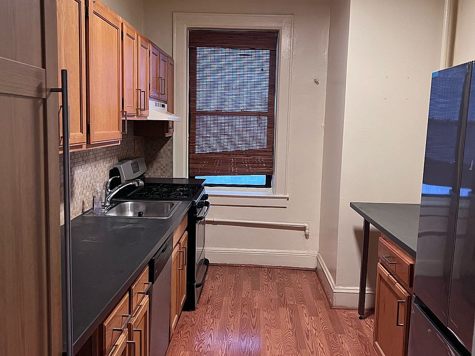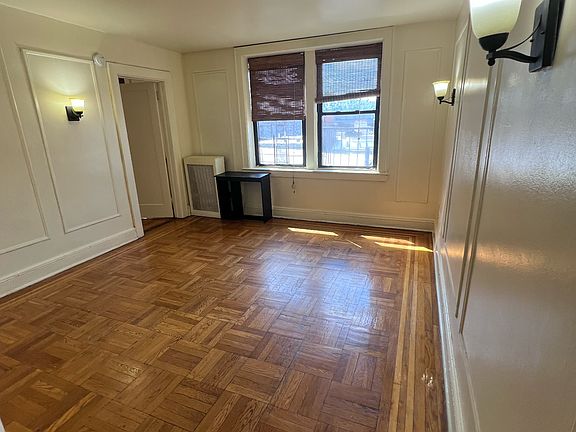 1br , 1ba, well-maintained unit in North Bergen. Hardwood parquet flooring and freshly painted, with decorative molding on walls. Across the street from the park, safe neighborhood. Super in building. Includes heat, hot water. Close to all major bus lines to NYC Credit and background check will be $50 for each applicant. Renter is responsible for all utilities except heat / hot water. Super / building will maintain common areas / property. One year minimum lease. First and last month rent due upon signing.